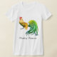 Grande ideia do presente para as senhoras que para possuir galinhas! Sinta como uma princesa com este design original da arte de um galo colorido, de cauda longa pelo artista Carolyn McFann do estúdio de ronrom de dois gatos em um t-shirt macio das senhoras da malha do jérsei. Este artigo é facilmente customizável (opcional).