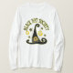 Sociedade do chapéu de uma bruxa e do chapéu negro do subtítulo em t-shirt do Dia das Bruxas, em botões, nas correntes do ímã, as chaves e em presentes mais assustadores da bruxa.