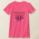 Mostrada em um roupa americano feminino e em Fuchsia Pink, esta camisa tem tudo que uma garota poderia pedir. Estilo, macio, pescoço da tripulação e mangas curtas. Gráfico em frente a um spray de flores de lírios com a frase de "nunca houve nem haverá um excelente como nosso DEUS". Personalizar ou comprar como está.