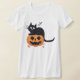 Adote o estilo vintage do Dia das Bruxas com este charmoso chá de mulheres! Imagem mostra: Retro black cat design com abóboras esculpidas, cores clássicas laranja/preto e gráficos nostálgicos do Dia das Bruxas. Feito de tecido macio e confortável com o ajustado feminino. Envio rápido! Perfeito para amantes de gatos, festas de Halloween, ou moda sazonal. Uma mistura deliciosa de amizade felina e estética de época assustadora eterno.