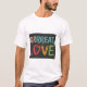 A t-shirt apresenta a frase "Grande Amor" num design de multicores lúdico. Cada letra se rompe com uma tonalidade vibrante diferente, criando uma sensação de diversão e energia. Os "Rs" são as estrelas do show, com uma fonte ousada, levemente amordaçada que enfatiza o rosnado lúgubre em "Grrreat".