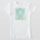 A conscientização do câncer de figado usa uma fita jade para sua consciência de causa. A arte da camisa apresenta uma pintura de anjo de fita de reconhecimento de jade. A mensagem da camisa do anjo de conscientização anota "Acredite no Câncer de figado CURE". Na parte de trás da camisa está a mensagem de causa "Eu espero e apoio a consciência para curar o Câncer de figado". A roupa de anjo de conscientização da jade pode ser personalizada com mensagens personalizadas para fazer roupas de evento de excelente para camisas de arrecadação de fundos, camisas de caminhada de grupo, presentes de camisetas de conscientização ou outras ocasiões especiais de eventos de causas especiais para mercadorias que ajudem a aumentar a conscientização da causa em público para a ajuda da sociedade em criar ajuda e causar mudanças.