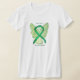 A conscientização da Saúde Mental usa uma fita verde para sua consciência de causa. A arte da camisa apresenta uma pintura de anjo de fita de reconhecimento verde. A mensagem da camiseta do anjo de conscientização anota "Acredite na Saúde Mental CURE". Na parte de trás da camisa está a mensagem de causa "Eu espero e apoio a consciência para curar a saúde mental". A roupa da faixa verde do anjo de consciência pode ser personalizada com mensagens personalizadas para fazer roupas de evento de excelente para camisas de arrecadação de fundos, camisas de caminhada de grupo, presentes de camisetas de conscientização ou outras ocasiões especiais de eventos de causas para a mercadoria para ajudar a aumentar a conscientização da causa em público para a ajuda da sociedade em criar ajuda e causar mudanças.