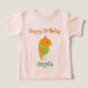 Uma camiseta de criança com um papagaio fofo em cores vibrantes como presente de aniversário personalizado e feito sob medida para meninas, celebrando um momento especial para bebês e pais.