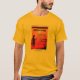 Camisa Hanes Nano, mostrada em Ouro Amarelo com mangas curtas, pescoço da tripulação e uma grande impressão fotográfica de um homem que pescam ao sol do ouro. Várias cores de amarelo, vermelhos, laranjas, browns e preto. Mostrado no tamanho S. Personalize mais ou mais este comprar como está.