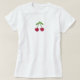 Camisa doce de cereja para vestir para visto do dia a dia. As cerejas são vermelhas brilhantes e parecem realistas. Na tendência com roupa minimalista e fruta inspirada.