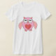 Esta camisa apresenta um desenho fofo de uma coruja rosa com olhos sonolentos, um pequeno bico e pequenos pés fofos. A coruja tem um grande coração de amor vermelho no meio da barriga e asas bem abertas prontas para dar um grande abraço a alguém.