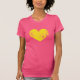 Camisa cardíaca colorida rosa e amarela desbotada. Símbolo de amor agitado. O velho vestido parece design. Também disponível em outras cores. Vestuário bonito e colorido para tema de praia ou casamento chic no país rústico. Faça um para noiva, damas de honra, madrinha de casamento etc. Personalizável com nome ou monograma. Ícone gráfico de estilo de escala em tons de escala em relevo.