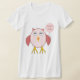 Esta camisa apresenta um desenho fofo de uma coruja rosa com olhos sonolentos, um largo bico aberto e penas fofinhas. A coruja está segurando um balão cor-de-rosa. Há um bonito texto cor-de-rosa dentro no balão que diz, "Menina". Este é o presente perfeito para celebrar uma menina recém-nascida.