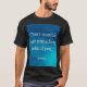 Esta camisa apresenta uma citação de Filosofia Estática de Seneca: "Não tropece em algo atrás de você."