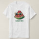 Bela caricatura. Uma fatia de melancia com óculos de sol. Texto personalizado.