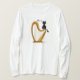 Uma camisa para amantes de harpa e gato! Os gatos adoram pular em todos os lugares, não é? As colheitas também não são poupadas.