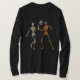 Dois esqueletos de dança sob uma bola espelhada do disco. Um esqueleto é feito no creme e na outra laranja. Camisa perfeita para o Dia das Bruxas.