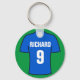 Presente para um fã de futebol. Keyring com uma camisa de futebol em azul. Personalize com sua escolha de nome e número.