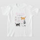 Esta camisa com o tema do gato é Purr-fect para o seu filho que ama o gato. Esta camisa tem uma variedade de gatos bonitos e estampas em forma de coração cor-de-rosa.