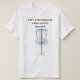 Na frente, esta camisa diz, "Não Entre um Homem e o Golfe do Disco."