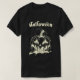 um design de t-shirt preto e branco com a declaração em negrito "Halloween" em solteiro.
