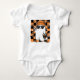 Dê início ao estilo de Halloween do seu pequeno com este body de fantasma "Muito Legal para Assustar"! Nosso pequeno fantasma simpático está usando um gorro, um sinal de paz e um balde de doces, tudo isso contra um divertido fundo xadrez laranja e preto. É o traje perfeito para a primeira aventura de doces ou travessuras do bebê ou simplesmente para trazer um clima legal para o campo de abóboras. Prepare-se para sorrisos!