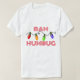A camiseta branca básica dos homens é mostrada com um Bah Humbug e luzes de férias impressão. Personalize este item e escolha outra cor de camisa ou estilo ou comprar como está.