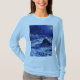 Uma camisa com a imagem de um inverno russo: a neve, a casa tradicional, a lua.