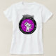 O logotipo oficial FWAS impresso em grande escala na camisa de uma mulher.