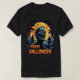 Solte a sujeira com esta melodia gráfica com um terrível zumbi, um hordo morto-vivo assustador, e um pano de fundo da lua de cheio brilhando. A ousada mensagem "Feliz Dia das Bruxas" torna-a perfeita para festas, amantes de horror ou estilo de roupa de rua assustador.