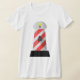 Um design de farol muito legal. Este farol é vermelho e branco listrado e realmente produz um efeito excelente. Este farol tem uma base preta, o corpo listrado vermelho e branco e a luz no topo. Este design de farol vermelho e branco parece excelente nesta camiseta feminina. Perfeito para si mesmo ou como presente