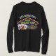 Personalize suas próprias camisetas de manga longa para a viagem de festa de solteiro para uma escapada em Las Vegas. Uma camiseta de manga longa legal com elementos essenciais de cassino, como um baralho de cartas, fichas de pôquer e roleta com Vegas Trip em escrita amarela. Camisetas divertidas para jogadores para todo o seu grupo.
