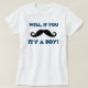 Este t-shirt de maternidade é certo obter alguns risos. Caracteriza o provérbio se você bigode ele é um menino.