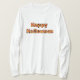Esta Camisa de Halloween tem o texto "Feliz Halloween" com um padrão de milho doce no texto.