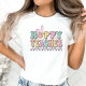 Esta é a camisa de Páscoa perfeita para professores e estilo retrô. Diz "Professora Hoppy" na frente com um design fofo.