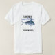 Poucas coisas se comparam à captura de um poderoso e muscular peixe-rastro. Mais importante do que o seu equipamento é ter a certeza de que tem uma camisa de sorte. E é isso! Cor do cheio imagem detalhada de um monstro Rósterfish com o texto Lucky Roosterfish Shirt DO NOT WASH.