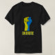 A bandeira ucraniana colore o punho desafiador azul e amarelo com o texto da Ucrânia. SLAVA UKRAINI Glória à Ucrânia. Apoiem as pessoas ucranianas!