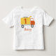 Esta camisa de aniversário de caminhões de construção é perfeita para a primeira festa de aniversário de um menino! Inclui ilustrações bonitas de um caminhão de lixo, o número 1, e um lugar para você adicionar o nome do seu filho. © 2021 Tea Olive Co.