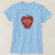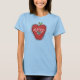 Uma camisa para professores de jardim de infância com ilustração de uma maçã vermelha decorada com um coração negro com bolinhas brancas e texto branco que diz, "PROFESSOR." O texto vermelho e preto do jardim de infância... rodeia a maçã.