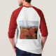 O antigo arenito nesta cena do deserto de Sonoran - do Vale do Mistério perto do Vale do Monumento na Arizona - dá a esta camisa de manga de 3/4 raglan um sabor único no Sudoeste. A cena é impressa no fundo e no bolso.