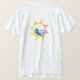 Surfista de cara no sol no fundo, nosso logotipo na frente.