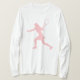 Camisa de tênis de manga comprida para mulheres | Vestuário de cor personalizado. Silhueta rosa de Pastel de uma jogadora com raquete tocando uma testa.