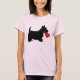 Que grande maneira de expressar seu amor para Scotties. Esta camisa caracteriza uma silhueta de Terrier escocês que guardara um coração vermelho em sua boca. Excelente para o dia dos namorados ou no exato momento em que você quer mostrar pouco amor para seu melhor amigo. Disponível com produtos de harmonização.
