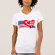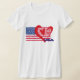 Esta camisa patriótica dos EUA tem uma imagem afligida da bandeira dos Estados Unidos com uma imagem rodada vermelha brilhante corajosa do coração coberta nela, e "EUA" no azul no canto direito mais baixo. Excelente para os Jogos Olímpicos ou alguma outra estação!