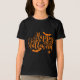 Prepare-se para um tempo assustador para o Dia das Bruxas com a camiseta deste menino mostrada com um impressão gráfico feliz feliz do Dia das Bruxas. Cor Preto Impressão é Laranja Personalize este item ou comprar como está. Imagem licenciada