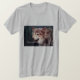 Reprodução de uma pintura a óleo original de uma pintura do lobo cinzento por Wanda Zuchowski-Schick em uma camisa cinzenta de t. Após 30 anos um professor da arte, Wanda Zuchowski-Schick devota agora sua atenção completa a sua carreira nas belas artes, e em tornar-se reconhecido como um pintor dos parques nacionais. Exibiu seus pinturas e impressões, primeiramente, durante todo o Midwest. Em 1997 foi concedida uma Artista-em-Residência no parque nacional de Royale da ilha. Porque um convidado do serviço de parque ela passou 16 dias na região selvagem isolada que leva a cabo seu art. em 2002 foi concedida uma outra Artista-em-Residência no parque nacional de Voyageurs. Outra vez por duas semanas trabalhou na região selvagem. Tenta, através de suas pinturas, compartilhar de sua ideia da extensão unspoiled da terra que as palavras não podem descrever. Estando sozinho para fora na extensão vasta de nossos parques nacionais humbles a e cria uma paz interna. Suas pinturas são realísticas e muito pessoais. Quer expressar somente sua impressão do wildness e da beleza da terra