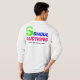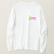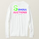 A camisa branca do longsleeve t dos homens com o Shoul vende em hasta o logotipo na caixa dianteira esquerda e um grande logotipo na parte traseira.