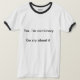 A t-shirt chegou dentro do tempo anunciado e apresentou-se com todas as características que estavam anunciadas. Boa qualidade do tecido e bons acabamentos. O tamanho veio conforme o pedido. Perfeita! Fiz apenas uma pequena personalização no texto, e o mesmo assim veio, bem como todo o restante texto, devidamente impresso e exactamente como estava anunciado na página. Sem falhas!