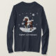 Brown e o potro branco da pintura canters através da neve com um bastão de doces em sua boca. Ilustração do Natal.