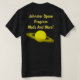 Uma camisa com meu logotipo na frente e um texto no verso com um logotipo amarelo saturno do principal.