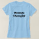 Procurando o roupa da massagem ou as camisas do terapeuta da massagem? Esta camisa tem as palavras da "terapeuta massagem" em uma pia batismal do divertimento, com as mãos que fazem parte das letras. Faz um grande presente para um terapeuta da massagem. Bom para qualquer um com treinamento da terapia da massagem ou treinamento na massagem ou na carroçaria da terapia: Massagem tailandesa, shiatsu, massagem chinesa, massagem oriental, massagem de sueco, reflexology, massagem dos termas, massagem pré-natal, esportes massagem, massagem do pé, massagem principal, massagem da aromaterapia, massagem médica, massagem do abrandamento, massagem eqüino, massagem canina, massagem profunda do tecido, massagem traseira, massagem do pescoço, massagem do corpo, e para terapeutas licenciados da massagem ou terapeutas de massagem certificada.