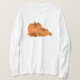 Esta Camisa de Abóbora de Queda apresenta abóboras desenhadas e coloridas usando Lápis Coloridos. Excelente para vestir este outono ou Ação de Graças.