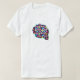 Rosas estilizados em néon brilhante cor-de-rosa, azul, amarelo e coral com folhas verdes neonatais são girados sobre um fundo roxo profundo para criar um padrão floral divertido. Esta camisa está disponível em várias cores e estilos.