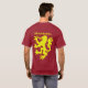 Caracteriza o o leão vermelho rujir da brasão do marechal de William na parte traseira e da sua brasão no bolso dianteiro.